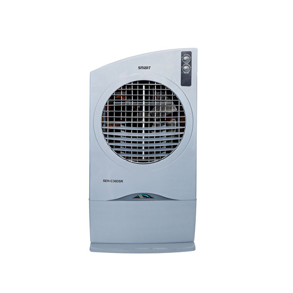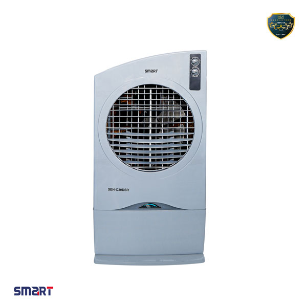 The SMART Branded Air Cooler SEH-C30DSR is designed to provide efficient and eco-friendly cooling for medium-sized rooms up to 350 sq. ft. This powerful air cooler features a 30-liter water tank capacity, ensuring extended cooling performance without frequent refills. The advanced Quadra Flow Technology ensures uniform air distribution across the room, while the auto swing louver enhances the cooling experience by directing airflow to all corners.