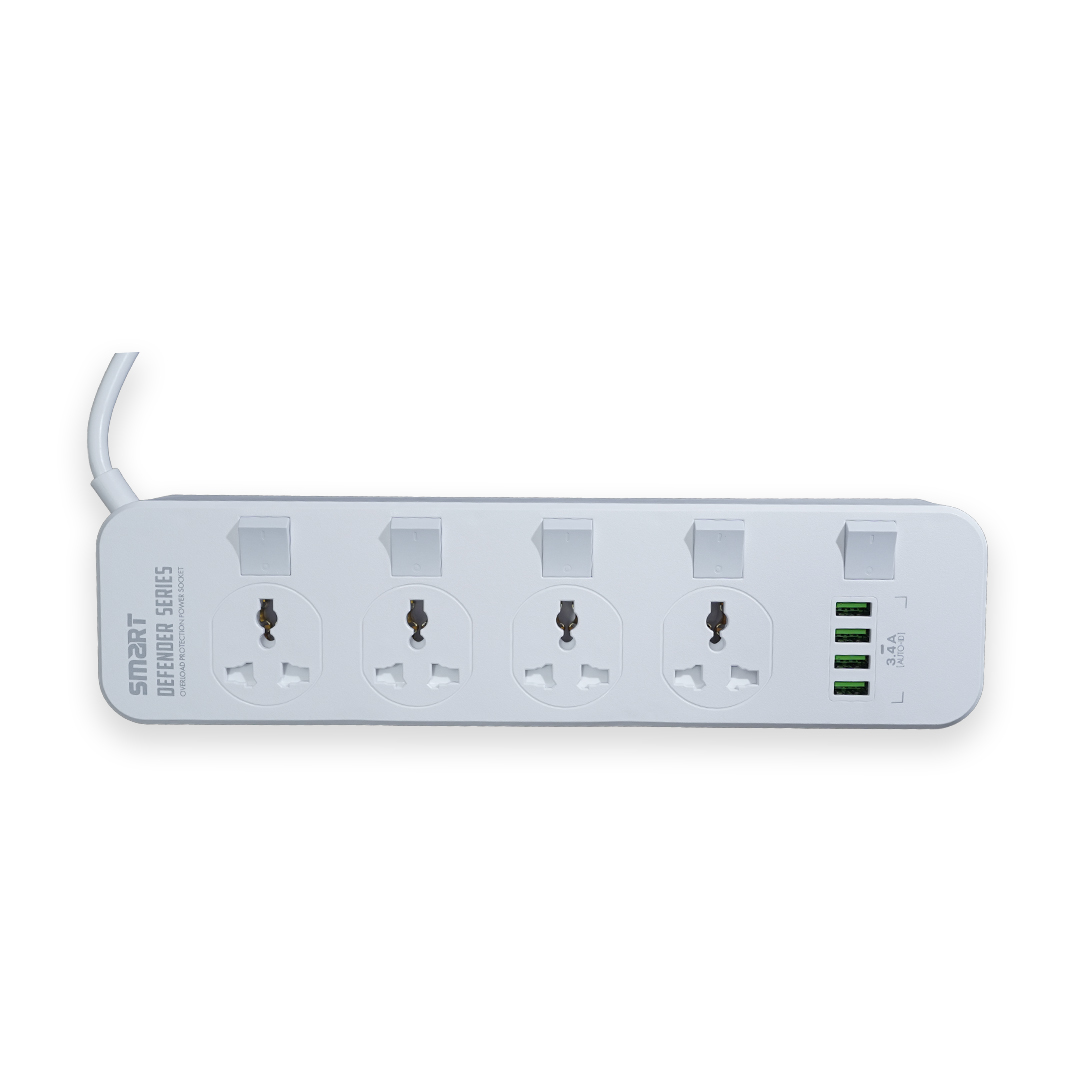 The SMART SEE-PE44L power socket is a versatile and reliable solution for powering and charging your devices. Designed for both safety and convenience, this universal power strip features 4 AC outlets and 4 USB ports with a total power output of 17W, ideal for charging multiple devices simultaneously. Equipped with an independent switch, overload protection, and a heavy-duty 2-meter power cord, the SEE-PE44L ensures optimal performance and safety for all your household appliances and gadgets. Its sleek 15° slope design makes it easy to plug and unplug devices, while compatibility with various plug types (US/EU/UK) makes it suitable for global use.